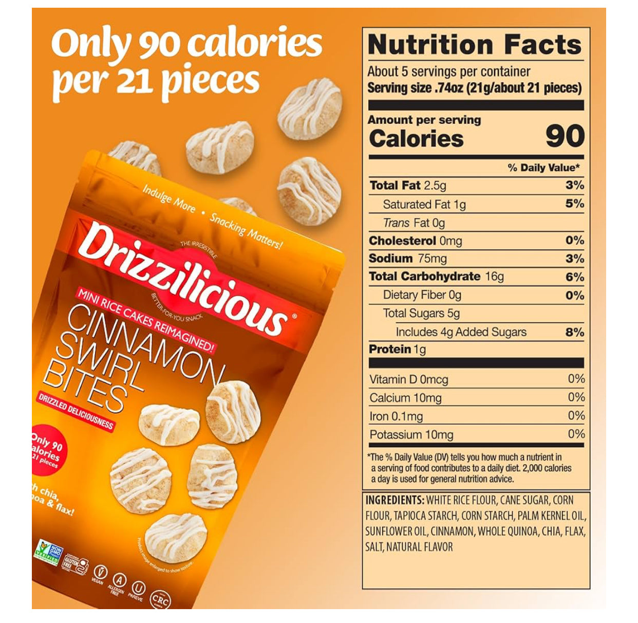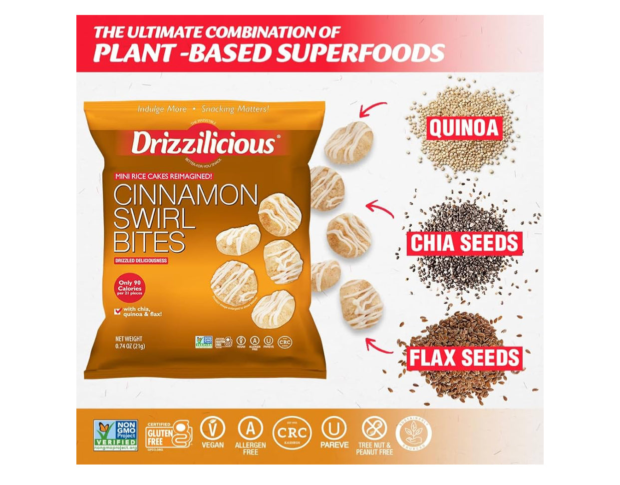 MINI TOSTADAS DE ARROZ SABOR A ROLLÓ DE CANELA. VEGANAS, SIN GLUTEN, SOLO 90 CALORÍAS POR PORCIÓN.