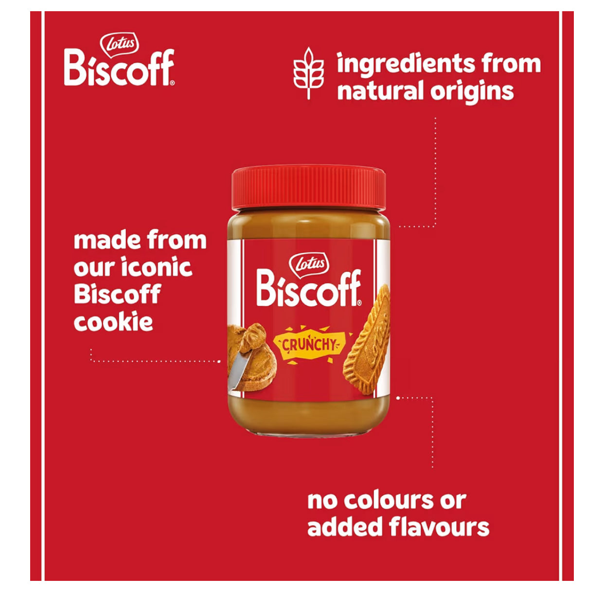 DISFRUTA DE LA FAMOSA BISCOFF COOKIE EN MANTEQUILLA CRUNCHY PARA UNTAR. VEGANA, LIBRE DE NUECES. 13.4 OZ