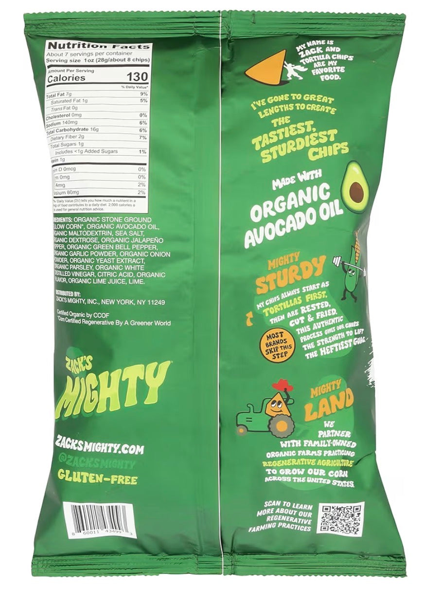 TORTILLA CHIPS HECHOS EN ACEITE DE AGUACATE ORGÁNICO, SABOR A LIMÓN Y JALAPEÑO. 7.5 OZ